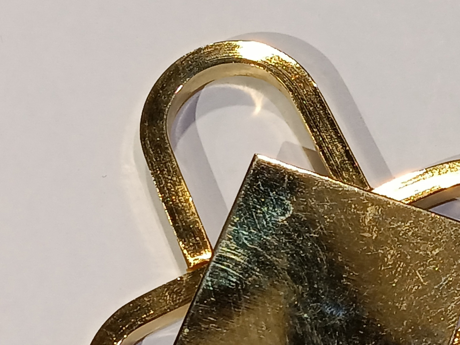 Chapa de forja en oro brillo en metal grueso con ganchos por la parte trasera par poder colocarlo.Muy utilizado para decoración de prendas de vestir,complementos de bisutería, detalles de tocados, trajes de fiestas, etc..