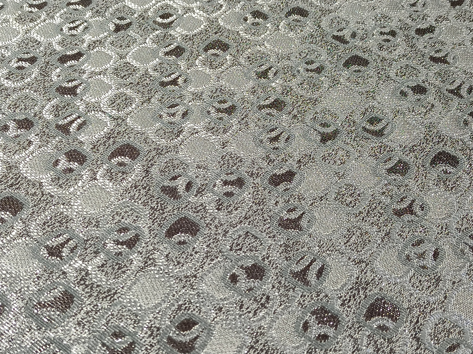 Tejido de jacqard de tipo brocado con diseño geométrico y detalles en lurex con textura suave para confección de trajes de ceremonia. Por todo el tejido lleva filamentos de efecto brillo en acabado lurex en plata que realza detalles de diseño.Tejido de una gran calidad .