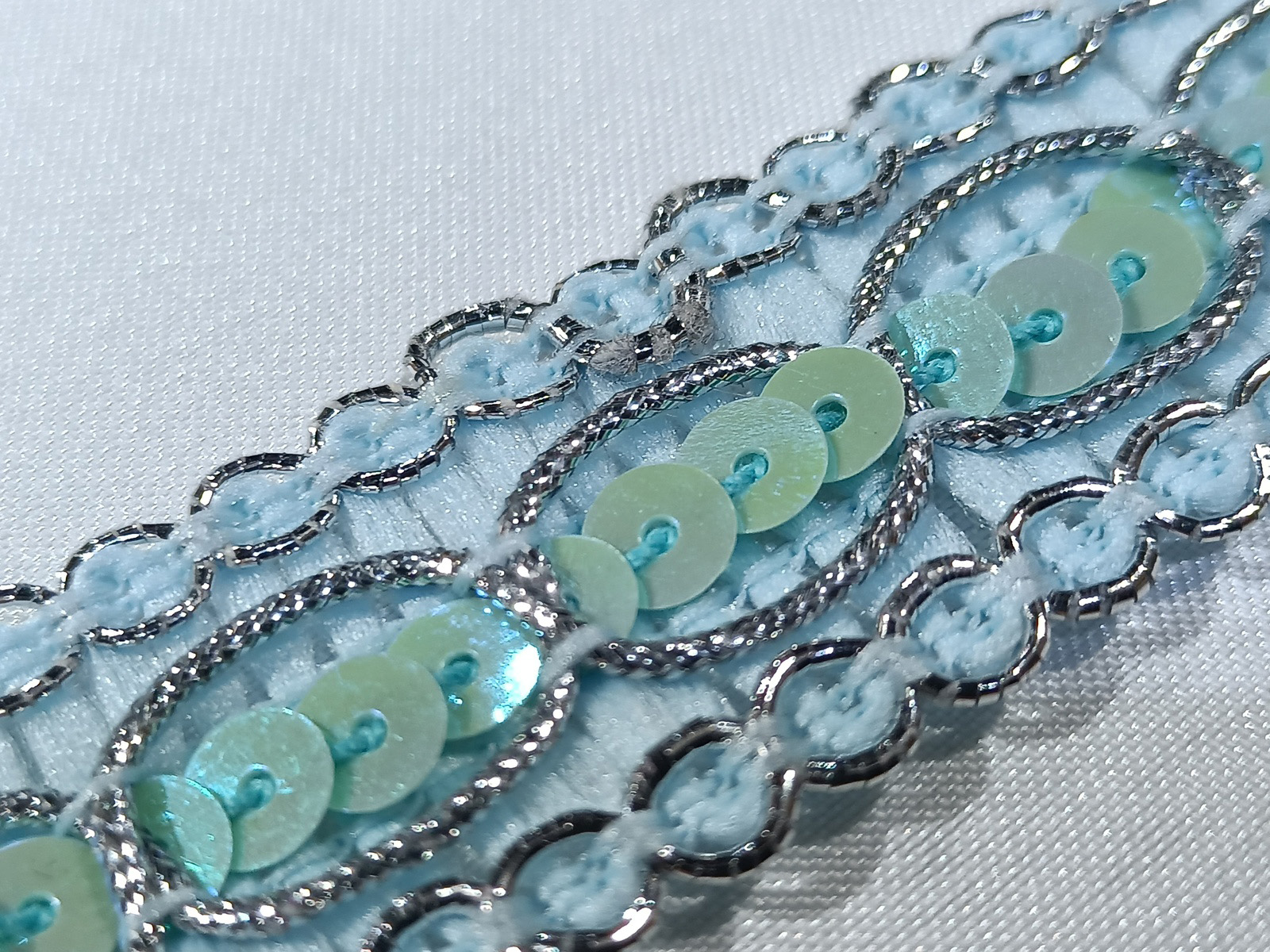 Ref: SAC-61743 Lentejuela Cadena Azul Celeste/Plata