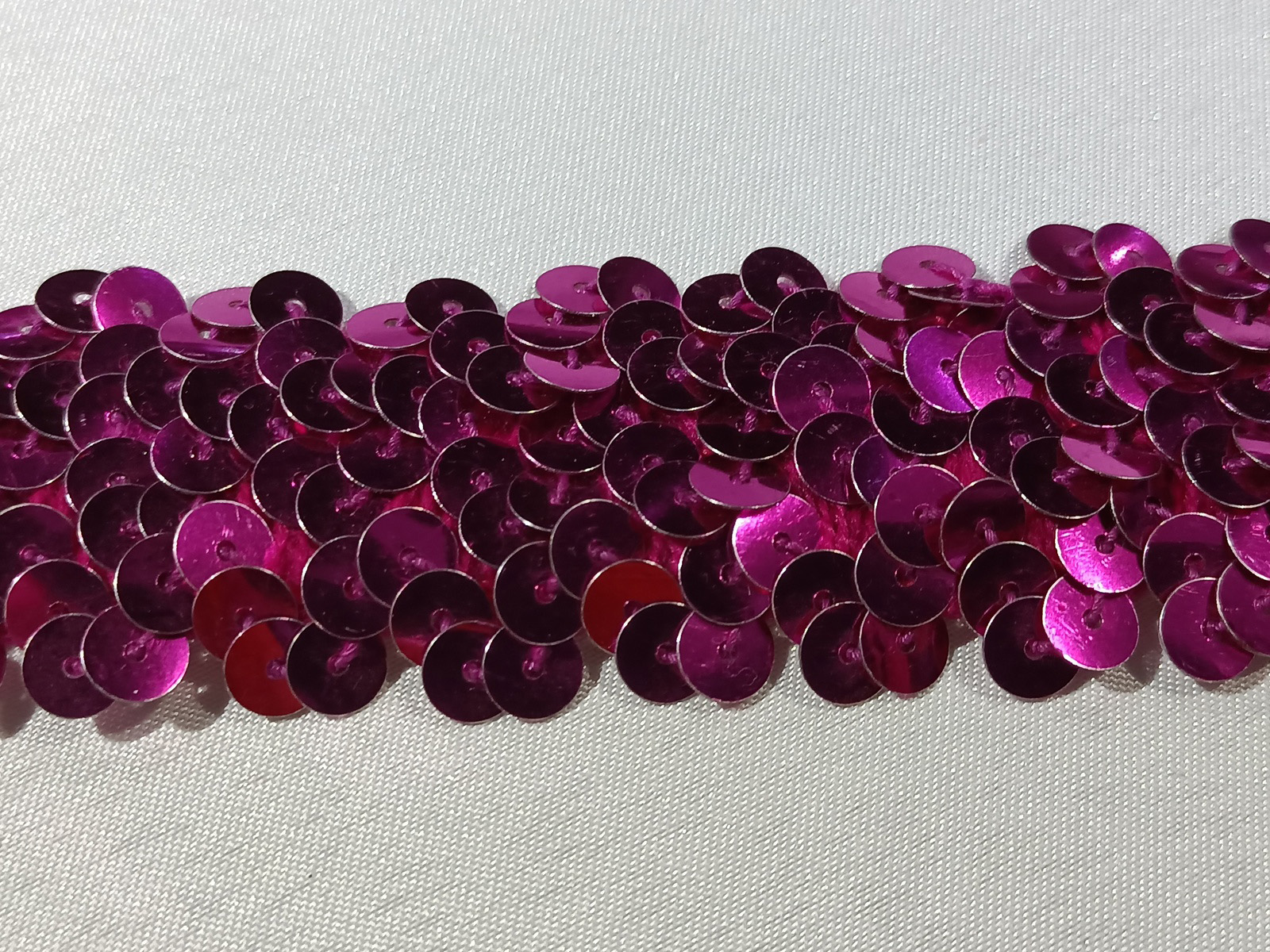 Pasamanería elástica de lentejuela cosida montada.Artículo utilizado para trajes de disfraces, manualidades y en general vestimenta divertida tipo carnaval.