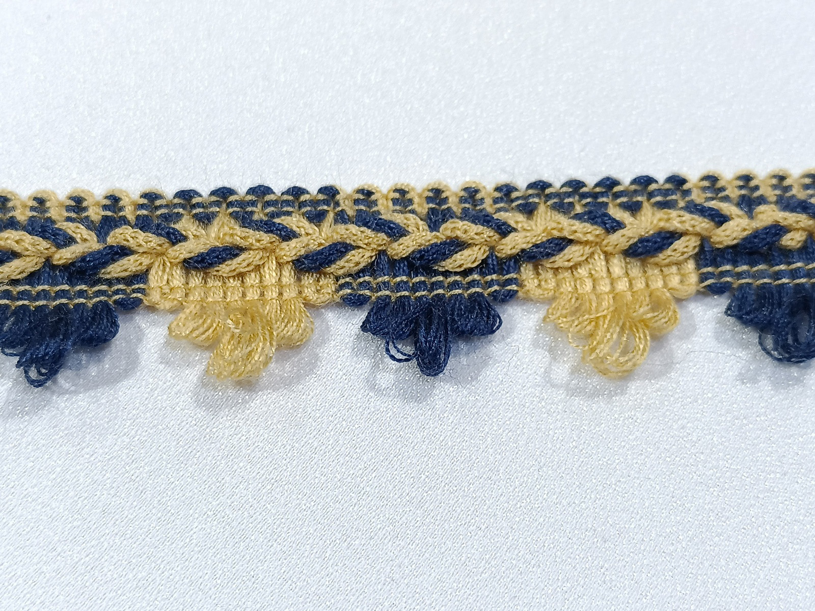 Pasamanería Picos trenzado en acabado rustico de gran colorido y tacto para cualquier prenda de vestir.