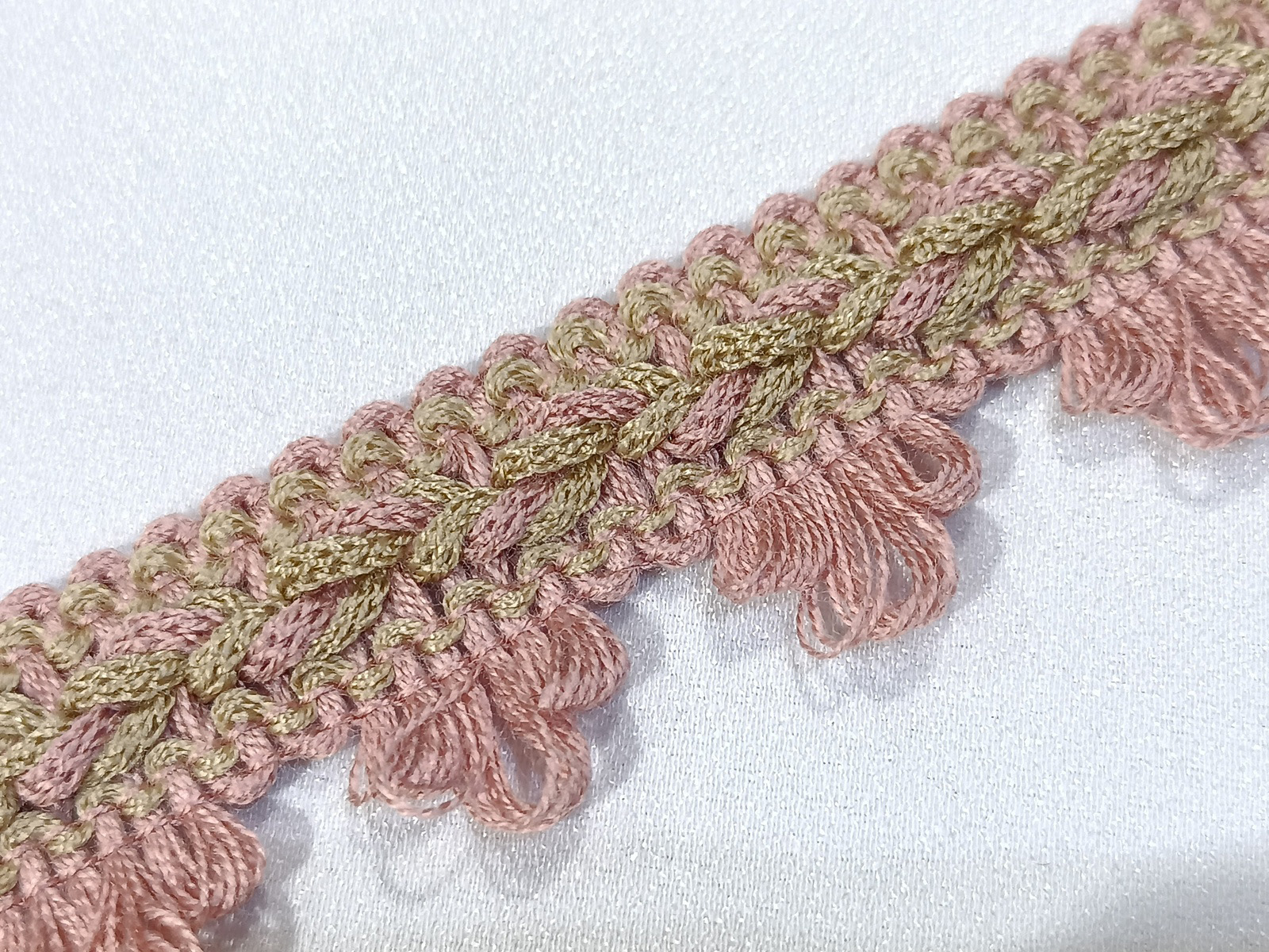 Pasamanería Picos trenzado en acabado rustico de gran colorido y tacto para cualquier prenda de vestir.